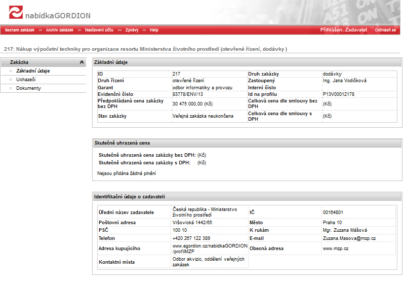 Název: Nákup výpočetní techniky pro organizace resortu Ministerstva životního prostředí - MIGRACE DAT Z PŘEDCHOZÍHO PROFILU ZADAVATELE