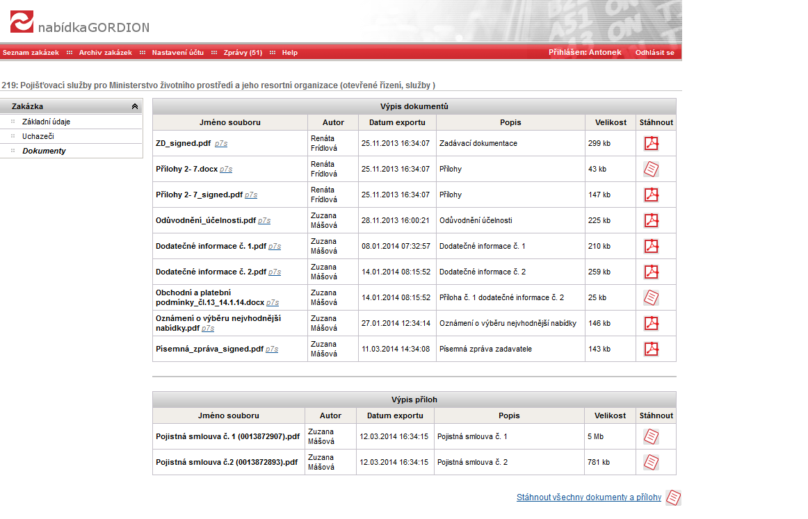| Název: | dokumenty z předchozího profilu zadavatele |